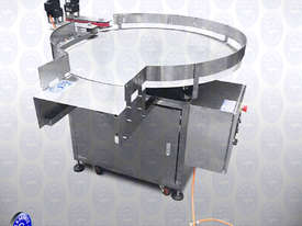 The Flamingo EFTT heavy duty accumulation turn tables are made of stainless steel. New Design Turn Tables have twin side belt transfer system to Feed or Collect bottles. The Belt speed is variable. Turn tables can be integrated to existing production lines. Bottle collision / Backup sensors can be supplied optionally.
