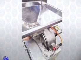 The material is fed into the pulverizer chamber and ground by the rotating attrition head. The fineness of the resulting powder is controlled by the adjustment of the gap between gear and impact ring assembly of the unit.