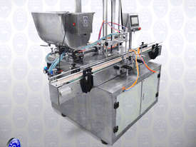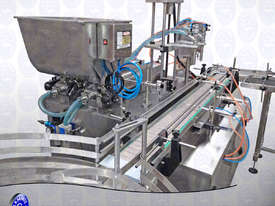 Automatic Multi-head Piston Fillers integrated with conveyor. Suitable for pastes or liquids. Complete filling capping and labeling lines are available; enquire within.